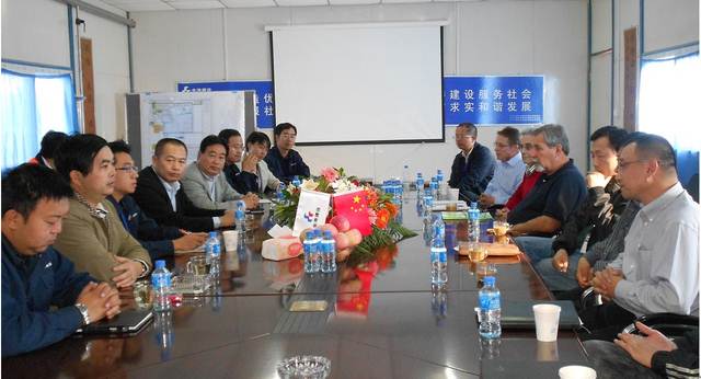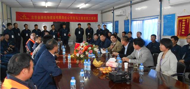 10日上午10時整,全體員工在王金福、王碩等項目領(lǐng)導(dǎo)的帶領(lǐng)下,列隊迎接譚董事長、劉總和李總一行。譚董事長和劉總首先對十一長假期間仍然奮戰(zhàn)在第一線上的全體員工致以節(jié)日的問候。并與項目工作人員合影留念,隨后,領(lǐng)導(dǎo)們參觀了項目部各個部門,與每一位員工進行了親切的交談,詢問了員工的飲食起居和工作情況,對項目部的管理運行模式給予了充分的肯定。