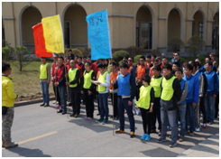 經(jīng)過了拓展訓(xùn)練前奏項(xiàng)目的站軍姿之后,再次進(jìn)入室內(nèi)大廳里,大家懶懶散散、七扭八歪的樣子儼然已消失不見了,展示在眼前的是一支整整齊齊、精神飽滿的團(tuán)隊(duì)。此刻,沒有男女性別之分,沒有領(lǐng)導(dǎo)和員工的差異,有的只是教官和學(xué)員兩種角色。在教官的要求下,整個(gè)團(tuán)隊(duì)分為三支小隊(duì),每隊(duì)集體投票選出隊(duì)長(zhǎng)、隊(duì)秘、宣傳員、旗手以應(yīng)對(duì)一天的挑戰(zhàn)項(xiàng)目(PS:允許作為每隊(duì)組織者的均是項(xiàng)目員工,任何職位的領(lǐng)導(dǎo)不得擔(dān)任組織者)。經(jīng)過隊(duì)員的共同商議每個(gè)隊(duì)伍都有了自己的隊(duì)旗、隊(duì)名、隊(duì)歌、圖騰以及口號(hào),選擇即是擁有,擁有了就要堅(jiān)持到最后,一個(gè)都不放棄,一天的挑戰(zhàn)項(xiàng)目就在這樣的井然有序中開始了。