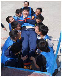 當(dāng)教官宣布逃生墻項(xiàng)目完成所需時(shí)間時(shí),我們徹底的瘋狂的歡呼了,忍不住淚流滿面,這一刻的成功有太多的汗水、太多的付出、有太多的感動(dòng)、有太多的淚水。我們相互擁抱著,無法控制的激動(dòng)除了歡呼和擁抱似乎沒有更好的表達(dá)方式。
