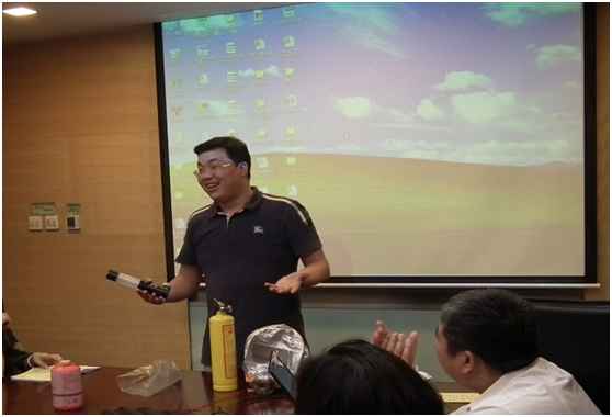 培訓(xùn)過(guò)程中,許教官結(jié)合消防安全制度以及各類火災(zāi)案例,以圖片、文字及視頻的形式,從“防火”、“滅火”、“逃生”、“自救”四個(gè)方面,對(duì)如何樹(shù)立公共消防意識(shí)、預(yù)防、杜絕可能引起消防事故的內(nèi)外隱患、個(gè)人面對(duì)突發(fā)火災(zāi)事故應(yīng)如何進(jìn)行救災(zāi)及逃生等方面進(jìn)行了全面的講解,讓公司員工充分了解了如何防火、滅火、逃生、自救等系列知識(shí)。之后,許教官還重點(diǎn)講解和示范了 “預(yù)防火災(zāi)四件寶”——泡沫自動(dòng)滅火裝置、多功能逃生自救器、防煙面罩和小型滅火器的使用方法,使大家真正掌握火災(zāi)事故的逃生自救知識(shí)和技能。