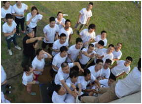 4、翻越畢業(yè)墻:以考驗團隊凝聚力、團隊配合與溝通、團隊責任感為主題。在特定的時間內(nèi),不借助任何輔助道具幫助的情況下,所有隊員均需成功翻越過一面四米二高的墻體,因此如何在有效的時間內(nèi)調(diào)整配置、統(tǒng)籌安排好全隊隊員,如何使全員在沒有任何外力保護措施下充分信任隊友,如何快速有效的制定一套有效的方案是此項目需要解決的核心問題。通過成功翻越畢業(yè)墻,使在場的每個隊員都體會到了在困難面前,一個人做不到的事情,通過精誠合作,依靠整個團隊的力量是可以完成的。