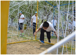 為增強拓展訓練的效果,公司聘請專業(yè)拓展培訓師擔任指導教練,并以組建四個新的團隊展開比拼。此次拓展過程中,在采用傳統(tǒng)拓展項目的基礎(chǔ)上,增加了體驗式的拓展項目,各隊隊員各司其職,各負其責,并圓滿的完成以下項目: