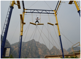 2、合力過橋:以磨煉團隊融合與團隊配合為中心。在全隊隊友的協(xié)助下,依靠團隊的集體智慧,齊心合力將站在高空移動“斷橋”上的隊員送到目的地。這個項目完美的展現(xiàn)了團隊成員間互幫互助、相互信任、團結(jié)協(xié)作的力量,同時,有效激發(fā)了個人的潛能,突破了心理極限,讓我們再一次體會到了方法總比困難多。
