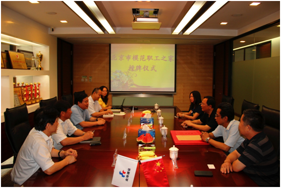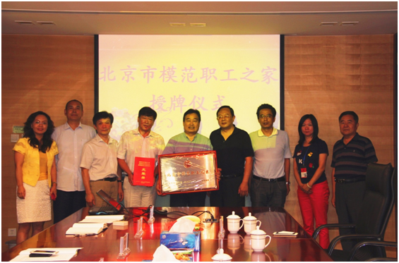 2015年7月28日,北京市總工會“北京市模范職工之家”授牌儀式在我公司舉行。豐臺區(qū)總工會副主席陳威、組織部部長甘沁力、豐臺街道總工會主席楊凱、副主席王朝軍、公司總經(jīng)理劉建東、副總經(jīng)理宗書智等領(lǐng)導(dǎo)出席了授牌儀式。