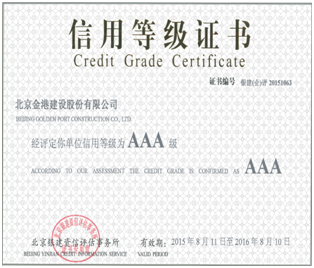 依據(jù)年初工作計劃,公司財務部積極組織并參與2015-2016年度北京銀建資信評估事務所信用等級評定工作,并于2015年8月11日榮獲“AAA信用等級證書”。