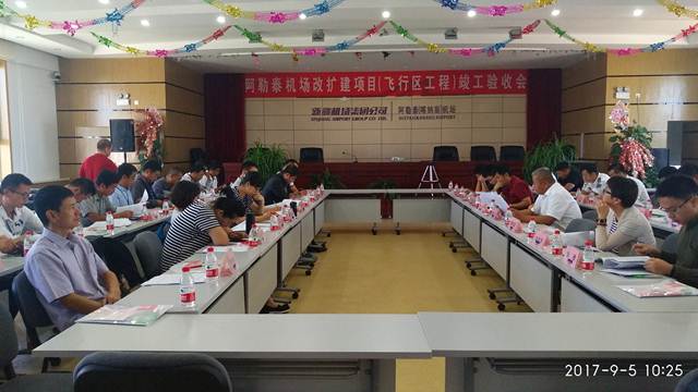 阿勒泰機(jī)場改擴(kuò)建工程是新疆阿勒泰市重點(diǎn)工程,阿勒泰市領(lǐng)導(dǎo)、民航質(zhì)監(jiān)站及新疆機(jī)場集團(tuán)領(lǐng)導(dǎo)對(duì)該工程高度重視,多次親臨施工現(xiàn)場視察工程進(jìn)展情況。2017年9月5日由新疆機(jī)場(集團(tuán))有限責(zé)任公司組織召開了新疆阿勒泰機(jī)場改擴(kuò)建工程竣工驗(yàn)收會(huì)議,新疆機(jī)場集團(tuán)公司、阿勒泰機(jī)場分公司、新疆民航質(zhì)量監(jiān)督站、擴(kuò)建指揮部、監(jiān)理、第三方檢測(cè)以及各施工單位主要負(fù)責(zé)人共同參加了此次會(huì)議。